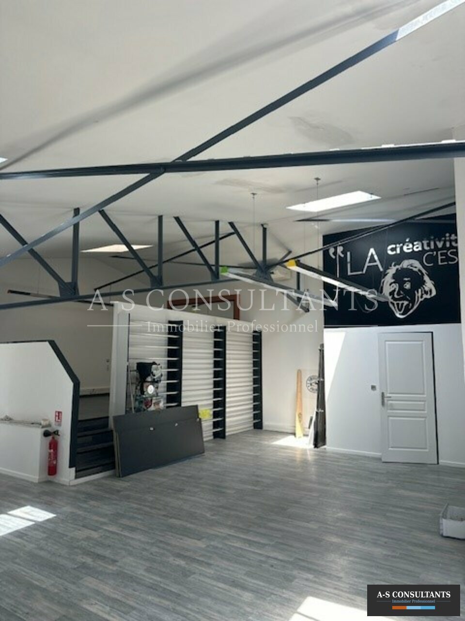 A LOUER, LA RAVOIRE (73490) – local professionnel / atelier avec stockage 250 m² environ en rez de chaussée (chauffé) + surface de 220 m² environ à l’étage avec 2 bureaux fermés, grand open-space atypique avec charpente métallique apparente – cuisine américaine entièrement équipée – éclairage leds – climatisation – sanitaires et douche – éclairage extérieur – accès livraisons – stationnement